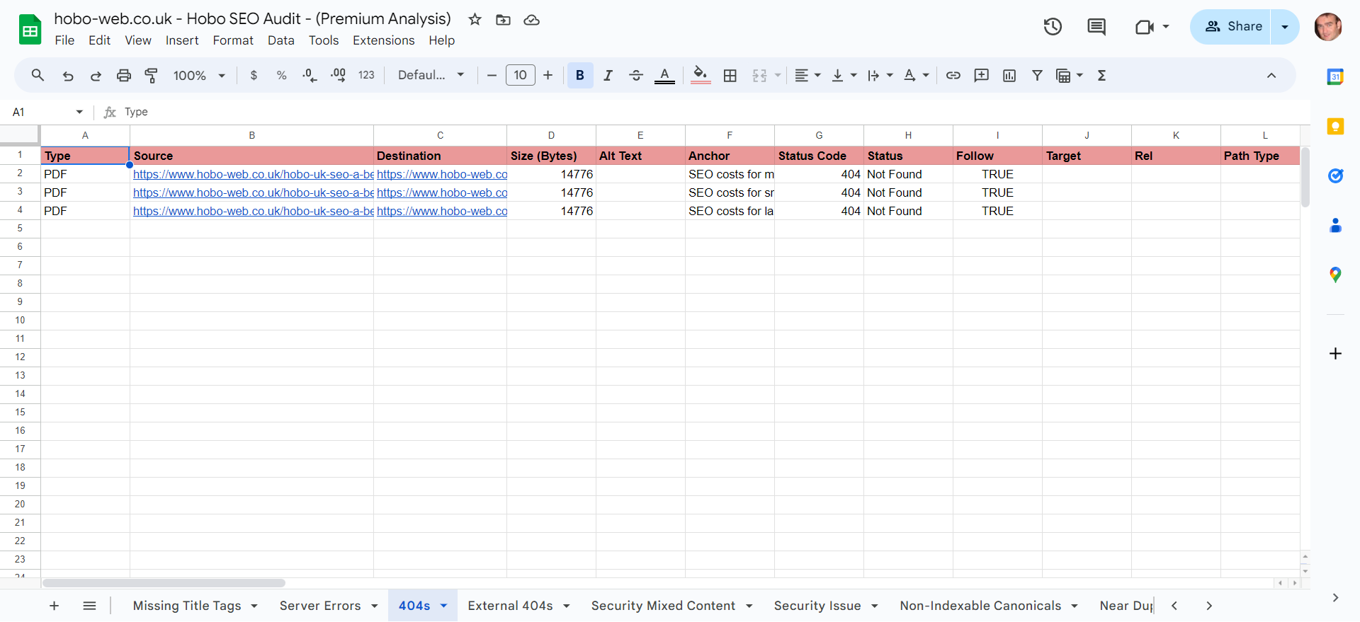 … and all in Google Sheets, which turns out to be an incredibly cost-effective way to perform a quality audit on any website, without the need for other expensive tools.