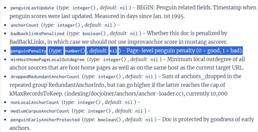 Even Google Penguin is mentioned in the leak (see unnatual links).